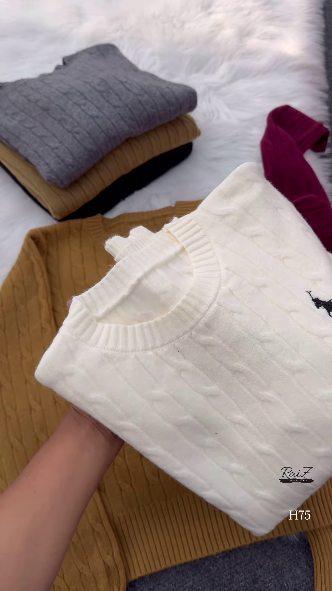 Cable-Knit Embroidered Sweaters 🧥 Available in Black, Beige, White, Gray, Mustard & Burgundy