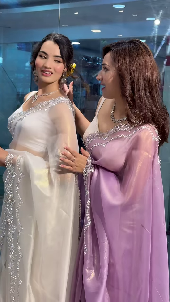 Elevate your evening wardrobe with this breathtaking chiffon saree, a masterpiece of contemporary ethnic design. This garment is crafted from premium-grade chiffon, a fabric celebrated for its airy, lightweight feel and its ability to create a fluid, graceful drape that enhances the wearer’s silhouette. The saree is available in two sophisticated shades: a pristine, angelic white and a soft, romantic lilac lavender. The fabric possesses a subtle natural sheen that reflects light beautifully, making it an ideal choice for grand receptions, cocktail parties, or high-end wedding festivities.