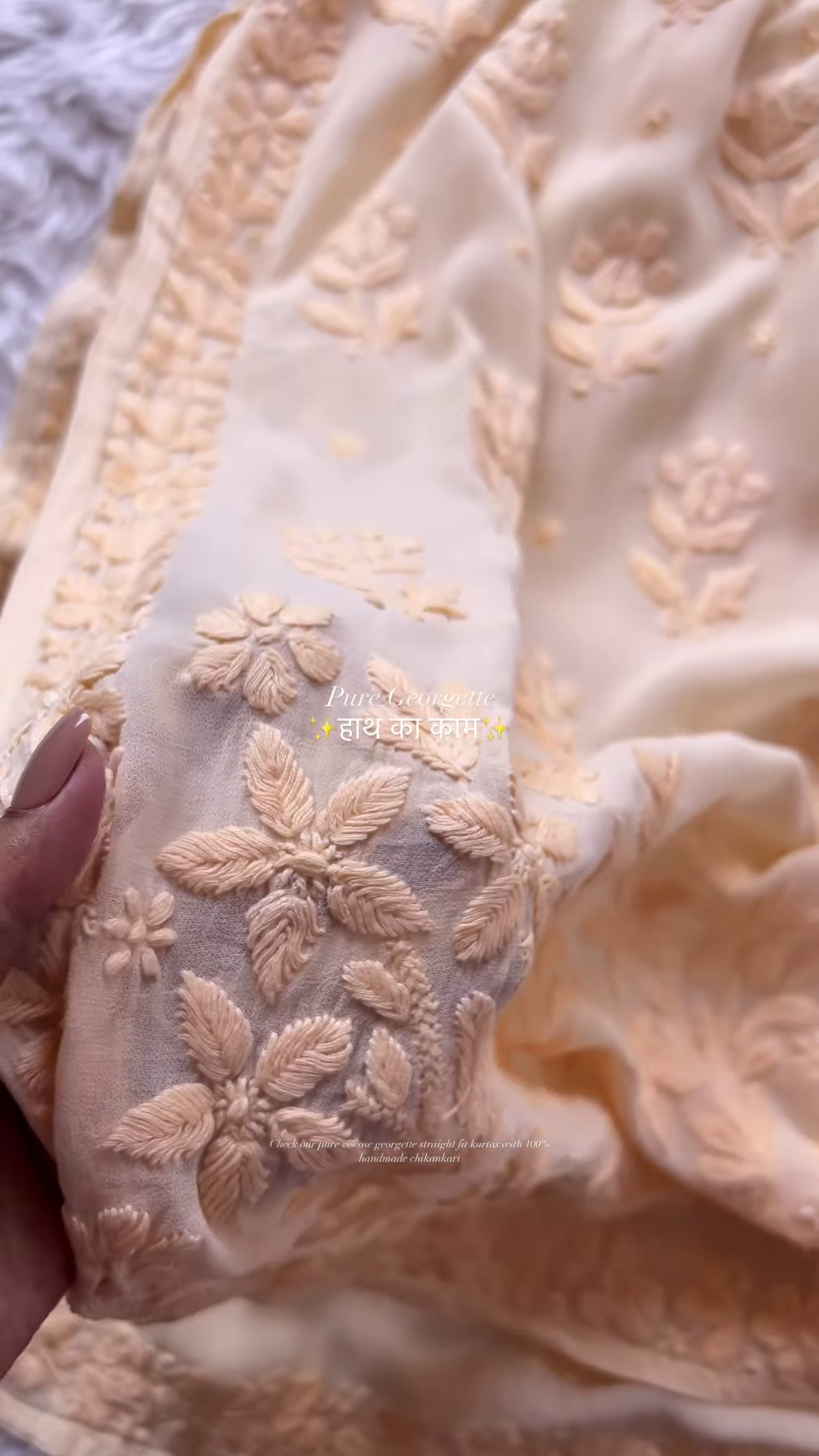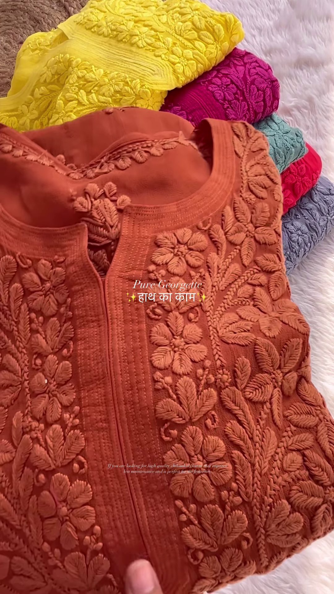Immerse yourself in the world-renowned artistry of Lucknow with these breathtaking pure georgette Chikankari kurtas. Available in two regal jewel tones—deep fuchsia pink and majestic royal purple—these garments represent the pinnacle of Indian hand-embroidery. The fabric used is premium, high-density pure georgette, a material celebrated for its ethereal transparency, lightweight feel, and a fluid drape that creates a feminine and graceful silhouette. Georgette is the perfect canvas for heavy needlework because it remains breathable and soft against the skin even when covered in dense thread patterns.