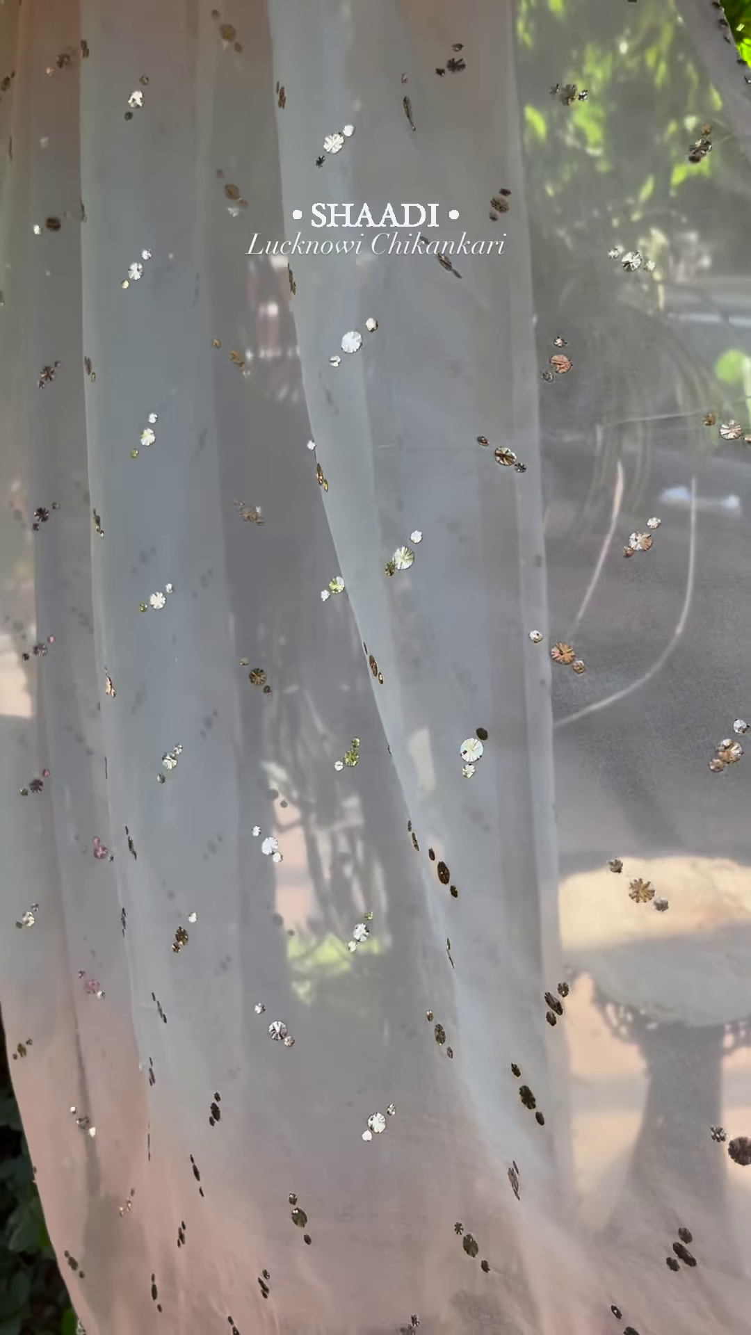 The kurta is a showcase of traditional Chikankari hand-embroidery. Intricate floral and vine patterns are meticulously hand-stitched across the entire front panel and sleeves using soft pastel threads in shades of lavender, blue, and sage green. To add a modern festive touch, the embroidery is interspersed with delicate “Mukaish” work and tiny transparent sequins. These elements reflect light subtly, providing a gentle shimmer that enhances the beauty of the hand-work without overpowering it. The sheer nature of the organza allows the intricate embroidery to appear as if it is floating, creating a magical and dreamy aesthetic.