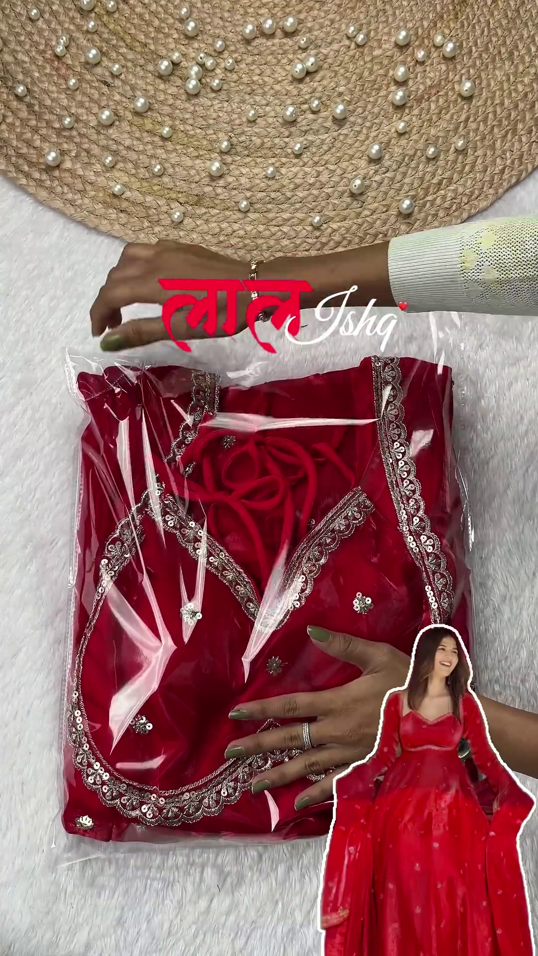 ✔️ Coordinated Dupatta: Features a matching red dupatta finished with a continuous scalloped zari frame to complement the gown.