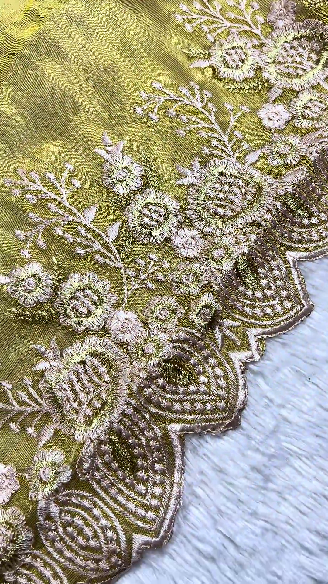 Regal Maroon Embroidered Blouse with Olive Green Scalloped Saree Set