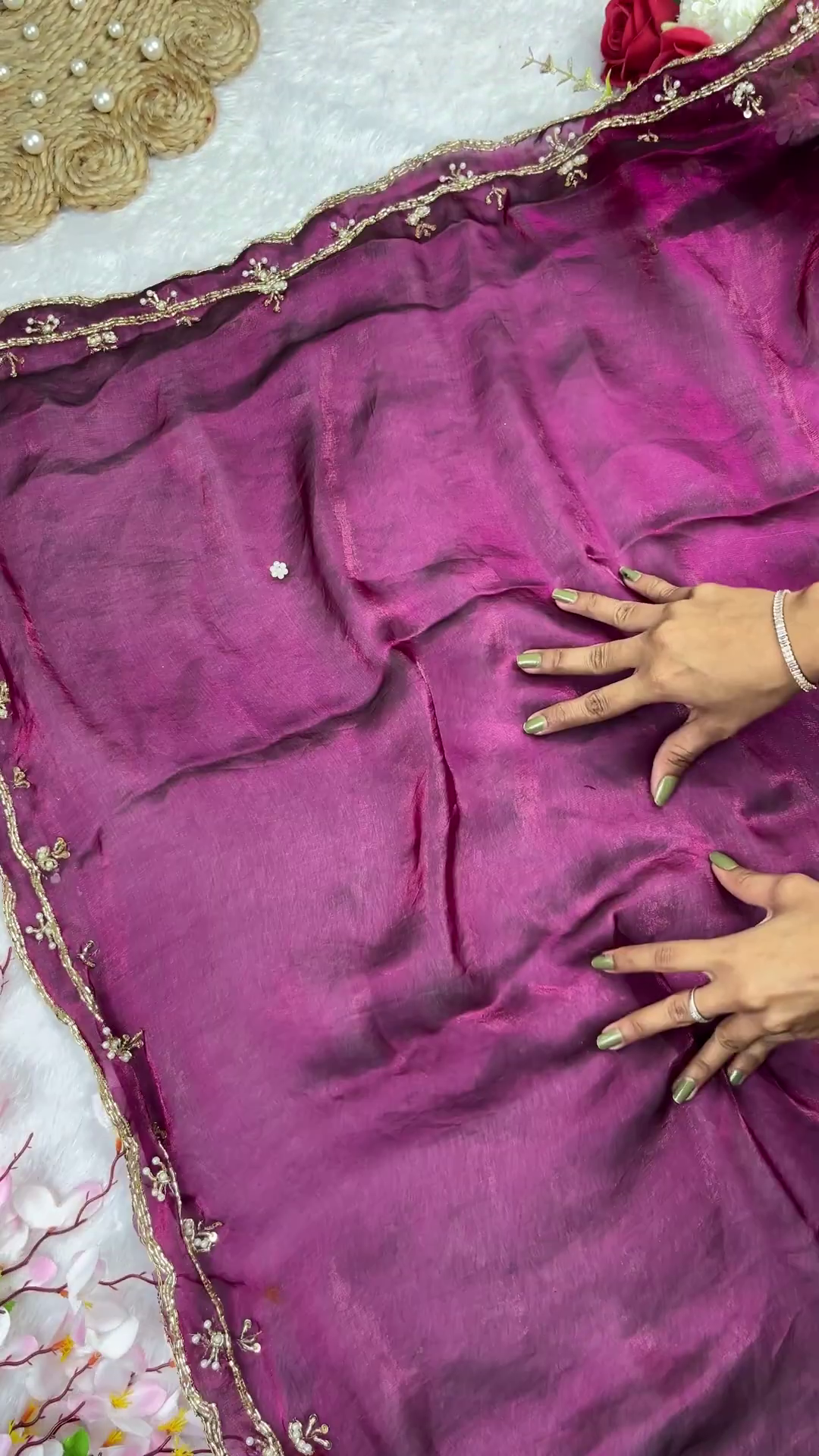 Handle with Care: Be cautious with delicate jewelry that may snag the golden dori or shoulder embroidery.