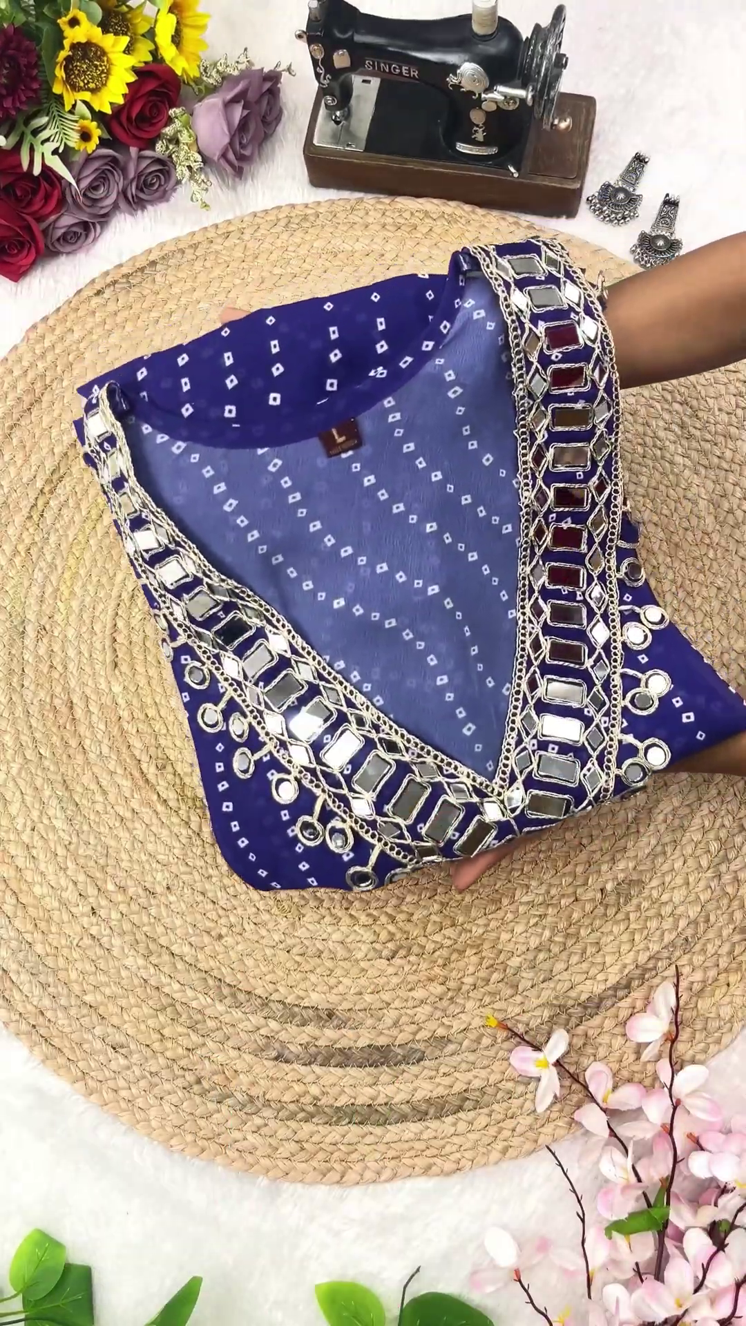 Vibrant Rani Pink Bandhani Anarkali with Heavy Mirror Work