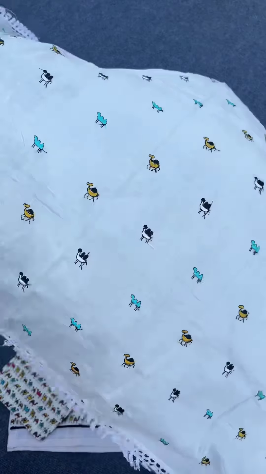 – Matching white dupatta adorned with small, colorful animal motifs that add a playful twist to the traditional silhouette